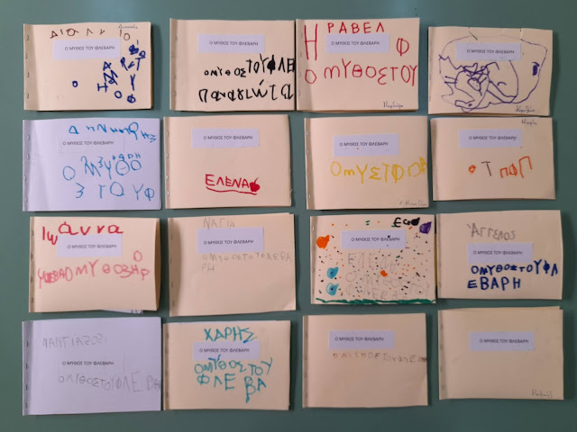 χρησιμοποιώντας την πολύ όμορφη εικονογραφημένη εκδοχή της Τάνιας Μάνεση και σε ένα βιβλιαράκι-κατασκευή, όπως προτείνεται στην ανάλογη ανάρτηση ΕΔΩ, οι μικροί μου μαθητές εικονογράφησαν το μύθο με το δικό τους ξεχωριστό τρόπο.